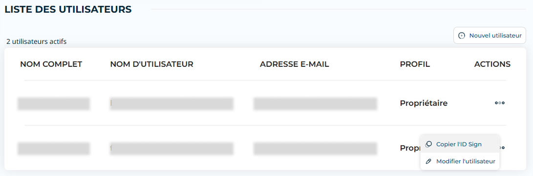 In your user's line, click on the 3 dots, then on “Copy Sign ID” to copy the user ID in order to paste it into the custom setting in the next step